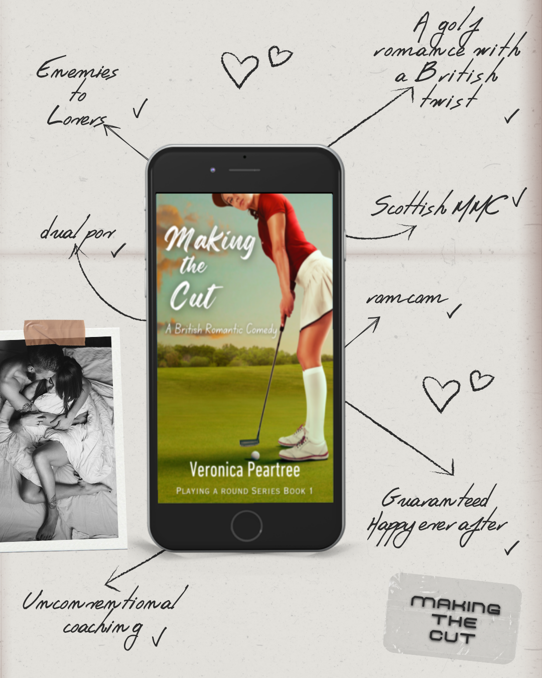 Making the Cut is a steamy enemies-to-lovers sports rom-com novella set in Scotland. This is the first book in the Playing a Round Series but can be read on its own as a standalone.
